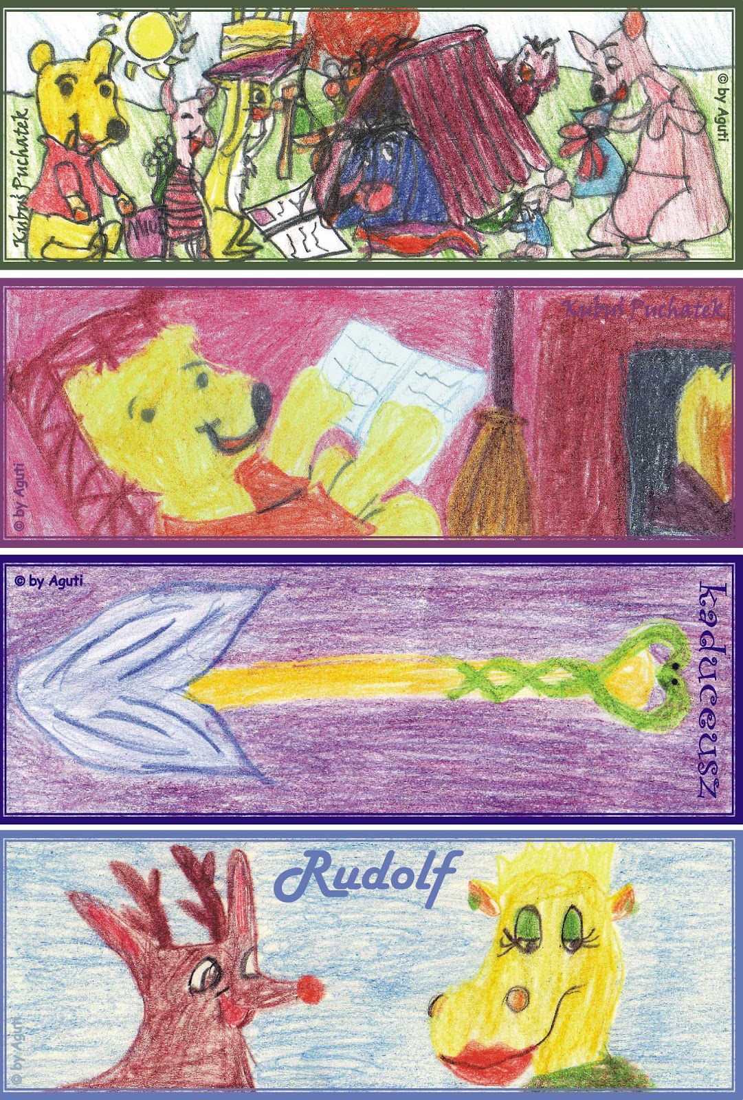 Na co dzień jest sporo o książkach, więc przyda się coś do książek, czyli zakładki. Tym razem będzie bajkowo. Rysowała moja córka jeszcze w czasach przedszkolnych. Wtedy też sporo ich porozdawałyśmy – niektóre dzieci pytały, co to jest. No cóż, bywa i tak.